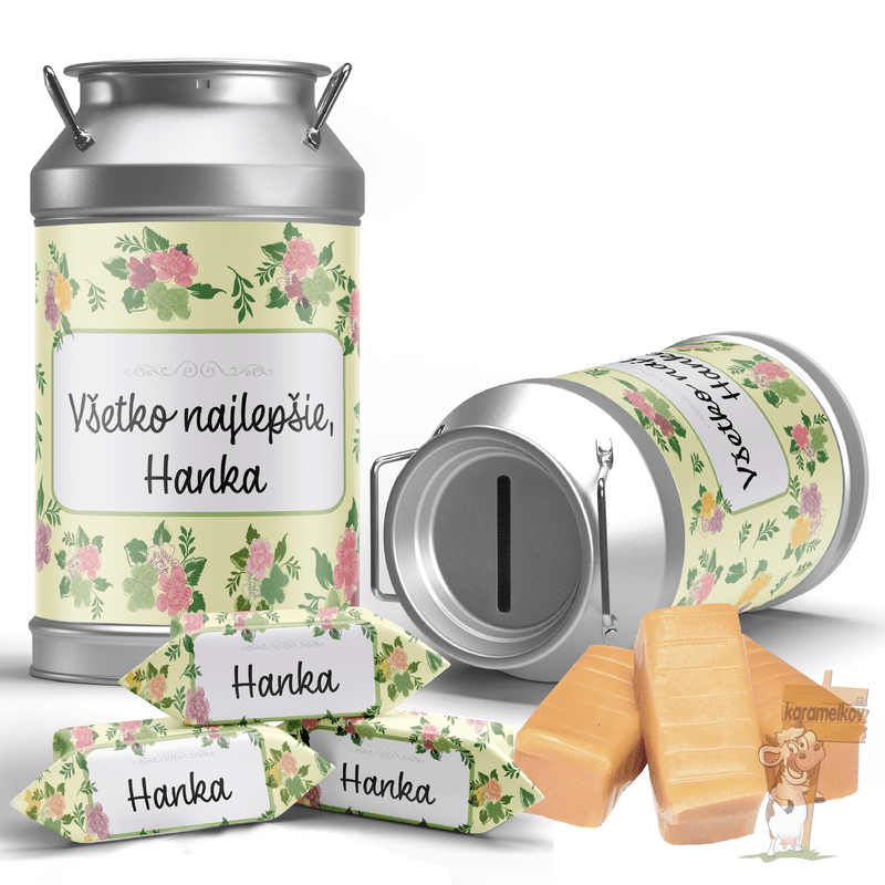 ✅ Lahodné karamelky v plechovej dóze s vlastným textom, ktorú je možné následne využiť ako pokladničku.