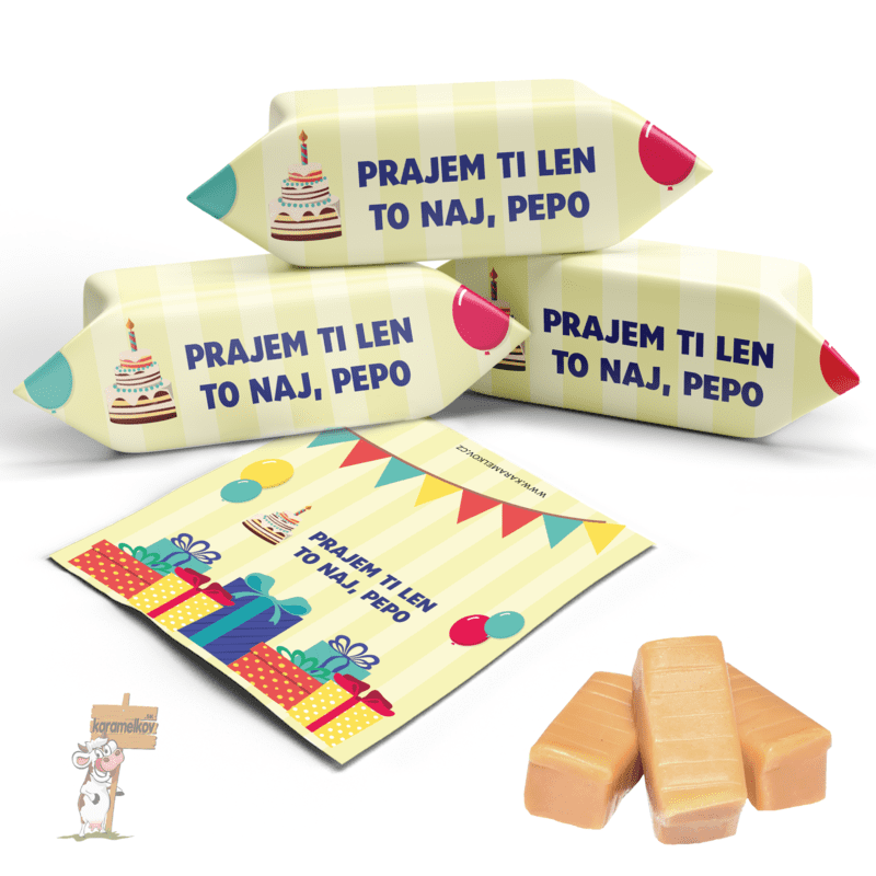 - Vaše karamelky budú zabalené do Vami zvoleného motívu as Vaším vlastným textom