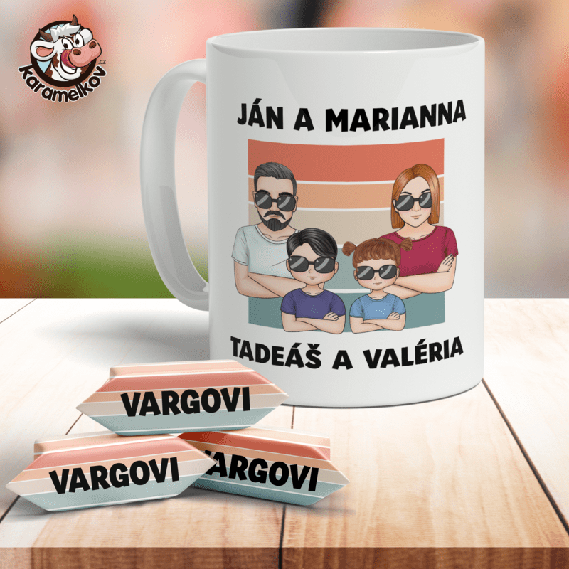 V hrnčeku o objeme 330ml a výške cca 9,5 cm nájdete 15-16 prémiových karameliek (min 170g) v podobnom motíve a tiež s vlastným textom ako pri hrnčeku.