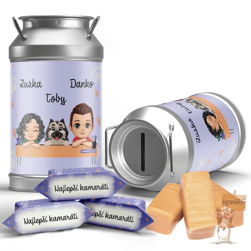 ✅ Lahodné karamelky v plechovej dóze s vlastným textom, ktorú je možné následne využiť ako pokladničku.