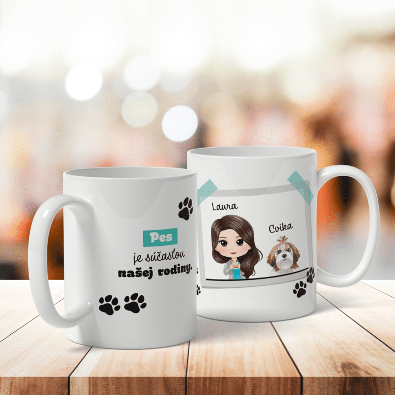 ✅ Zostavte si svoj hrnček podľa Vašich predstáv! Vyberte postavám na hrnčeku vlasy, oblečenie, postavu, motív, rasu psíka a mená. ❤️