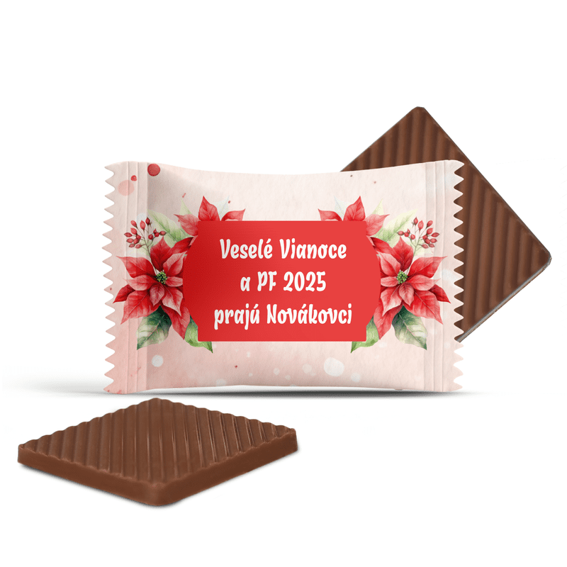 Na čokoládky napíšte krátky text podľa vášho želania, napríklad meno, blahoželanie či poďakovanie.
