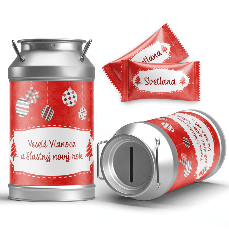 🎄Vianočná kolekcia lahodných cukríkov v plechovej dózičke s vlastným textom, ktorú môžete neskôr využiť ako pokladničku.