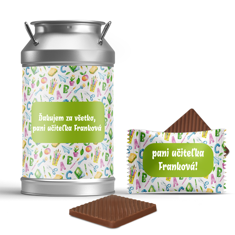 ✅ Lahodné mini čokoládky v kovovej dóze s tvojím vlastným textom, ktorú môžeš neskôr použiť ako pokladničku.