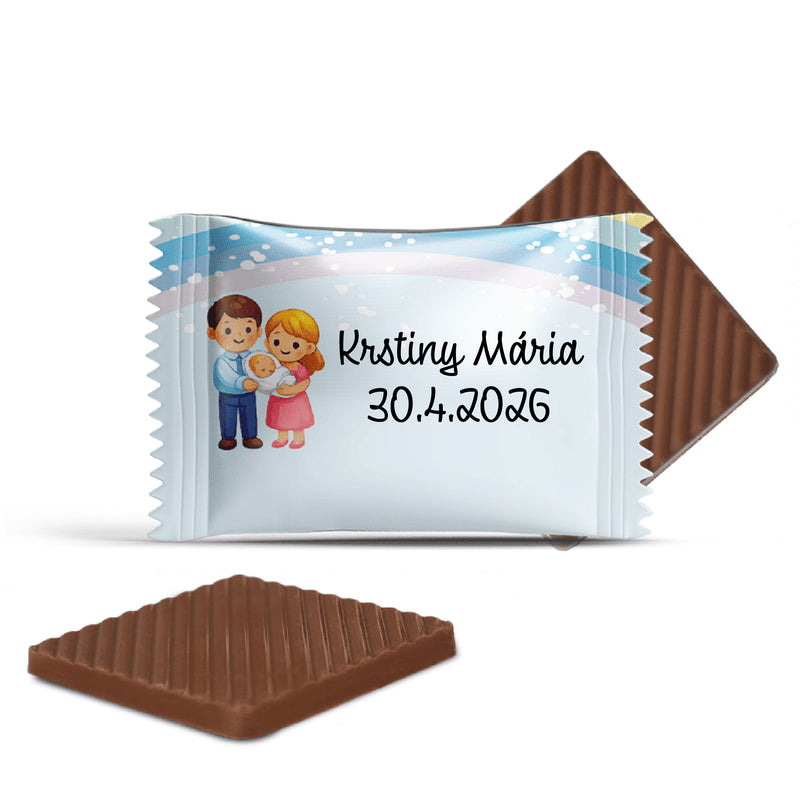 Na každú čokoládku môžete pridať vlastný text – meno bábätka, milý odkaz alebo poďakovanie hosťom.
