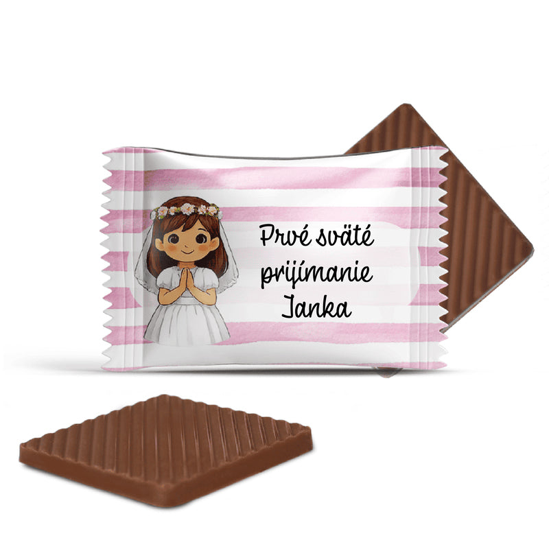 Na každú čokoládku môžete pridať vlastný text – meno bábätka, milý odkaz alebo poďakovanie hosťom.