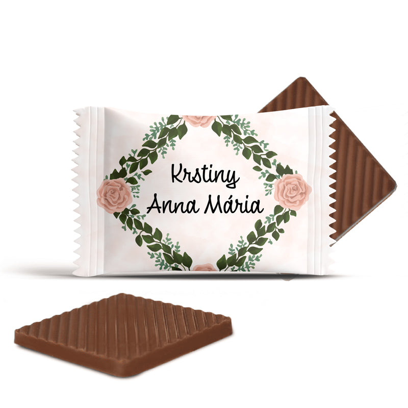 Na každú čokoládku môžete pridať vlastný text – meno bábätka, milý odkaz alebo poďakovanie hosťom.