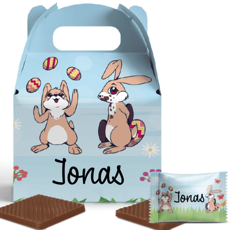Oster-Mini-Schokoladen mit individuellem Text in einer Geschenkbox 🐣🍫